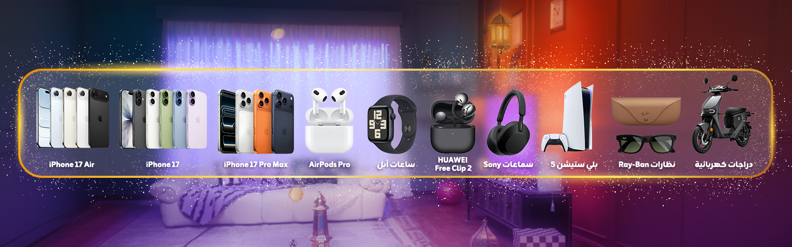 The campaign includes daily prizes that will be announced as part of the campaign details, including: iPhone 17 Pro Max, iPhone 17, iPhone Air, Apple Watch, AirPods, PlayStation 5, Ray-Ban Meta glasses, Sony headphones, Huawei headphones, and an electric motorcycle.